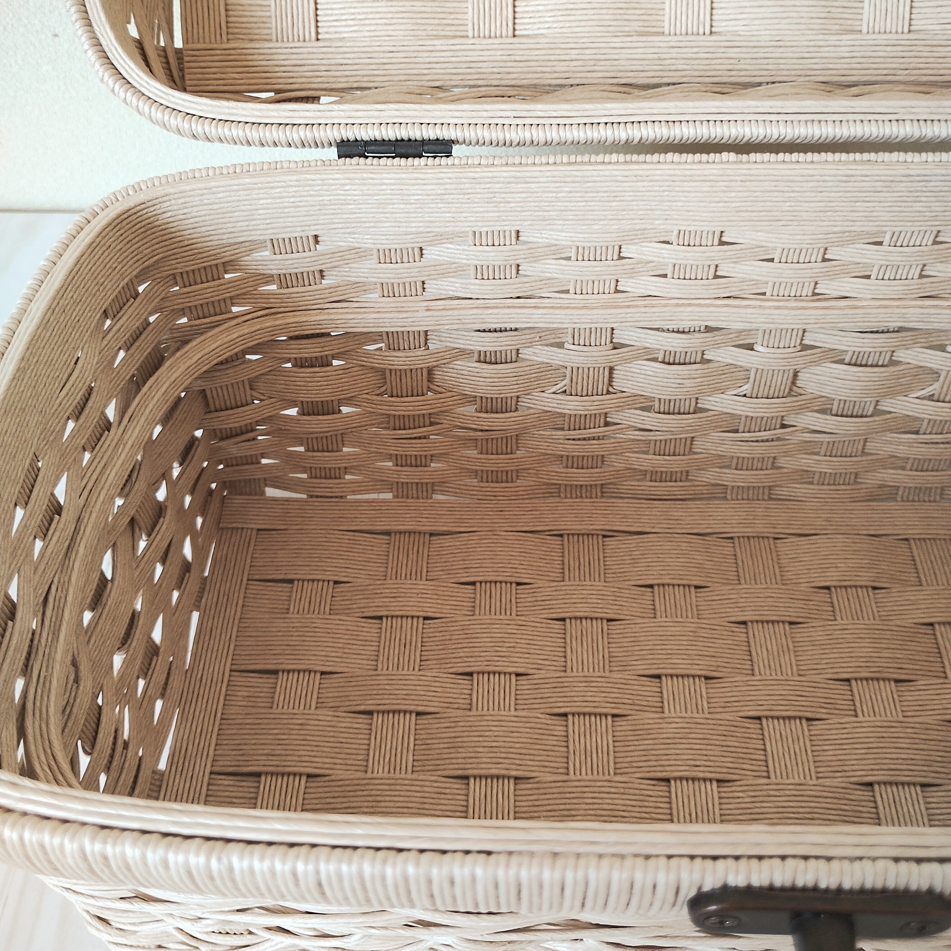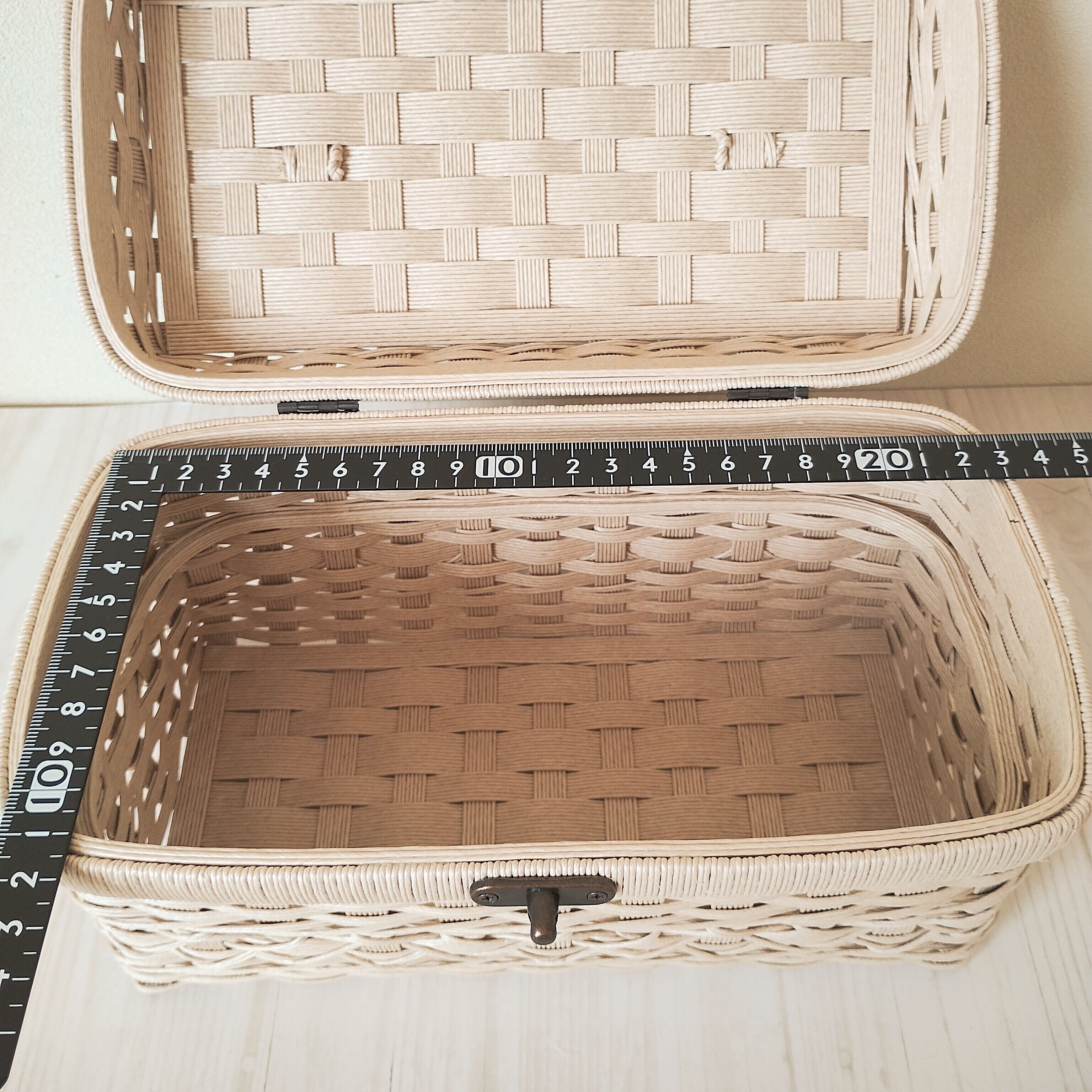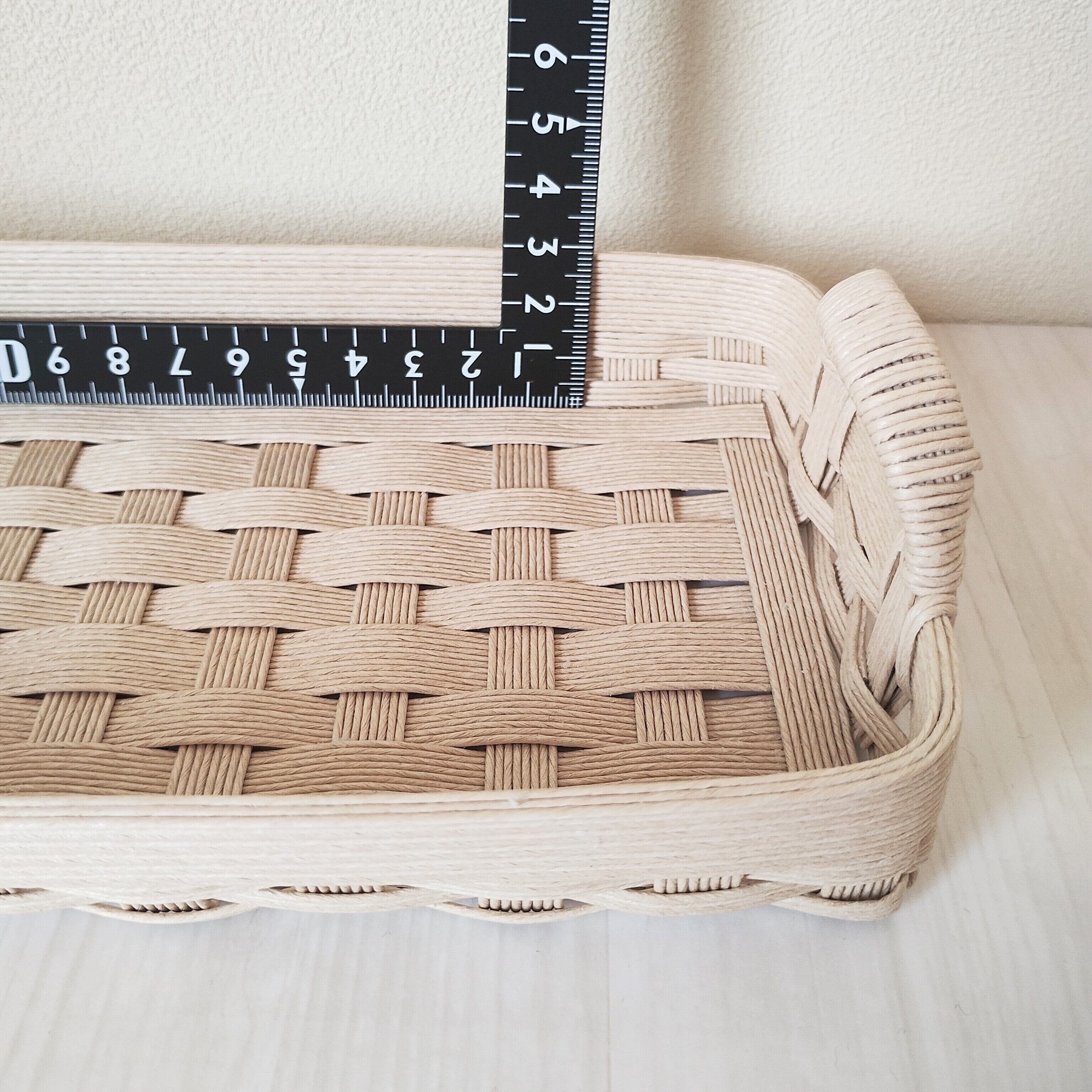 フタ付きバスケット 中トレー付き ベージュ 紙バンド クラフトバンド